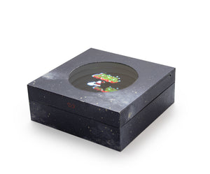 3D display screen perfume gift box with lift-off lid.